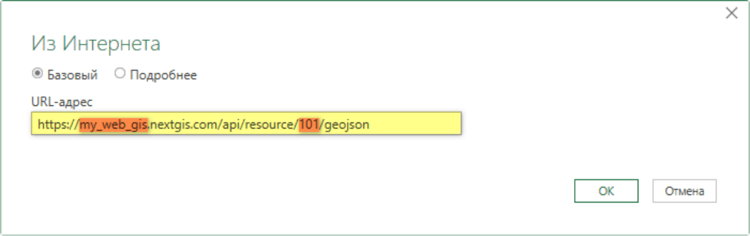 Источник - указать адрес ресурса NextGIS Web в формате GeoJSON.