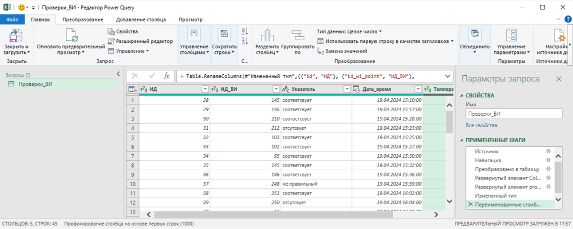 После выполнения предыдущих шагов данные уже доступны для использования. По умолчанию столбцам присваивается общий тип данных, и если не указать тип данных, то будет недоступна работа с датой и временем, возможны некорректные вычисления и т.д.