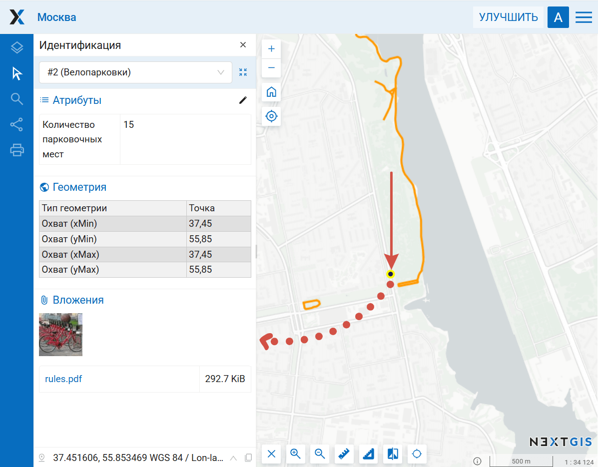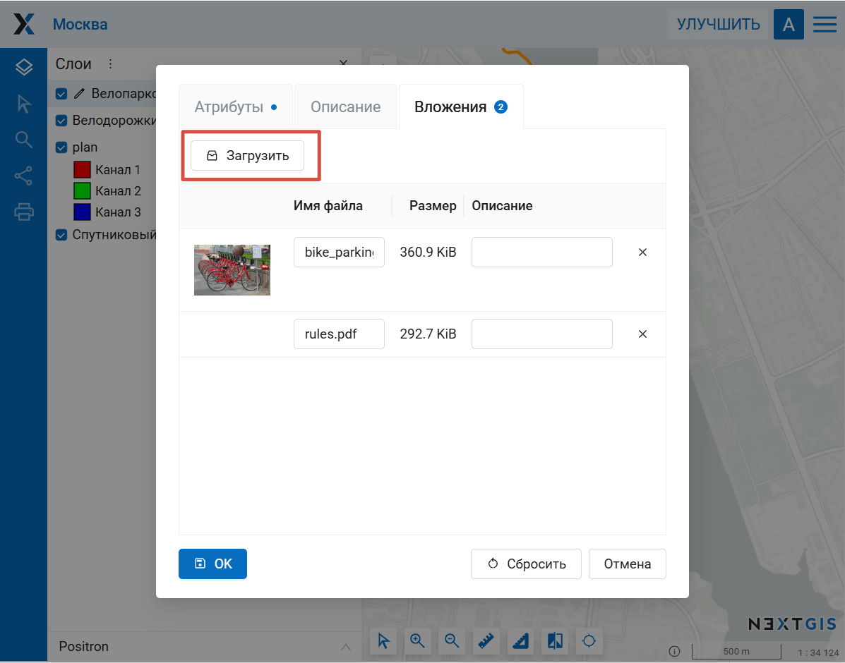Редактирование векторного слоя на веб-карте, добавление вложений¶