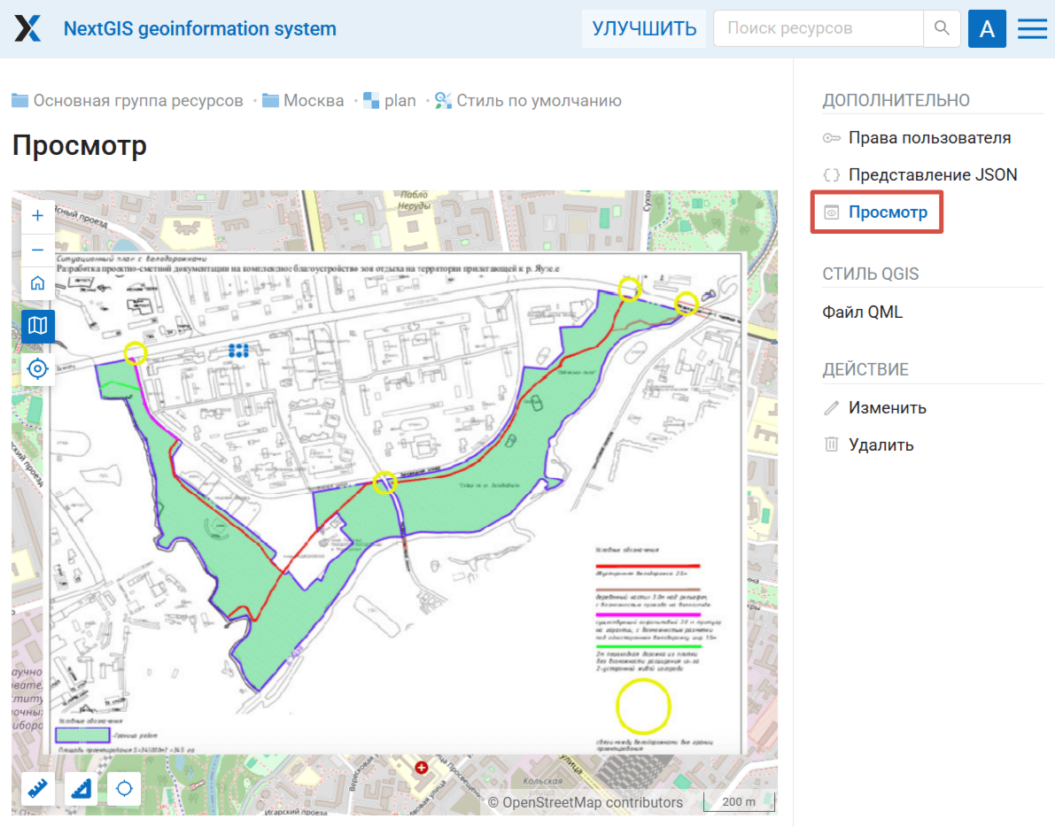 Выбрать первый подходящий дочерний ресурс справа от слоя. Отметьте стили в слоях Велодорожки и plan.