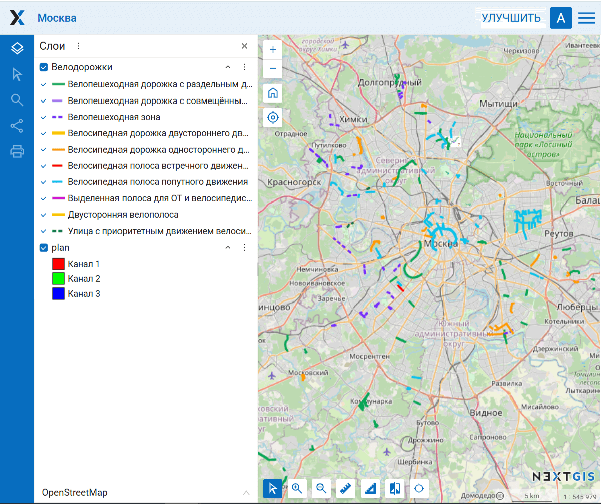 Загрузите файл bicycle_roads_moscow.qml из папки с примером. Затем нажмите кнопку Создать.