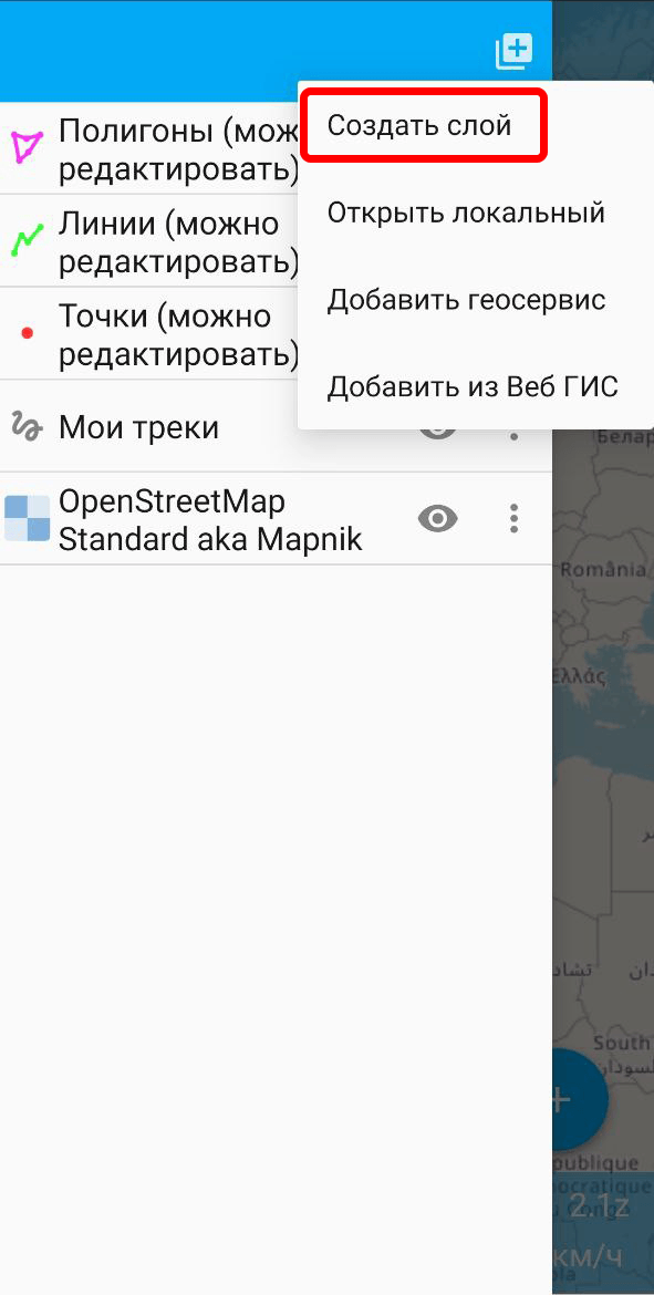 В меню добавления геоданных выберите Создать слой.