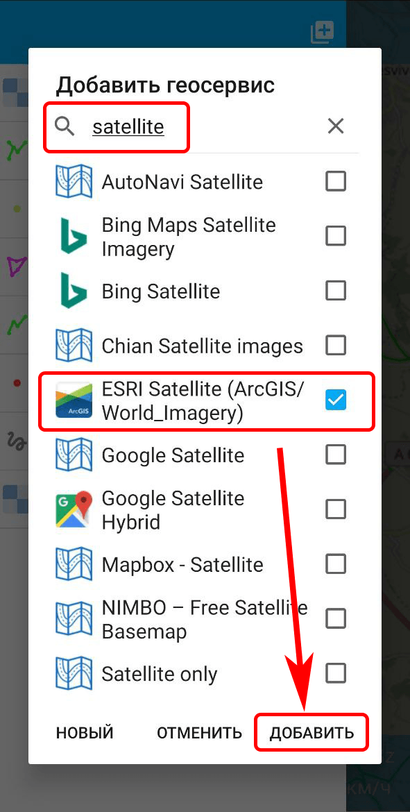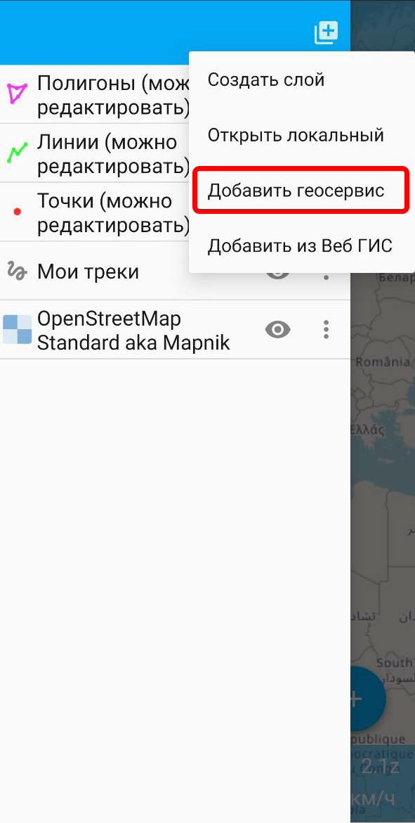 , далее выберите пункт диалога «Добавить геосервис».
