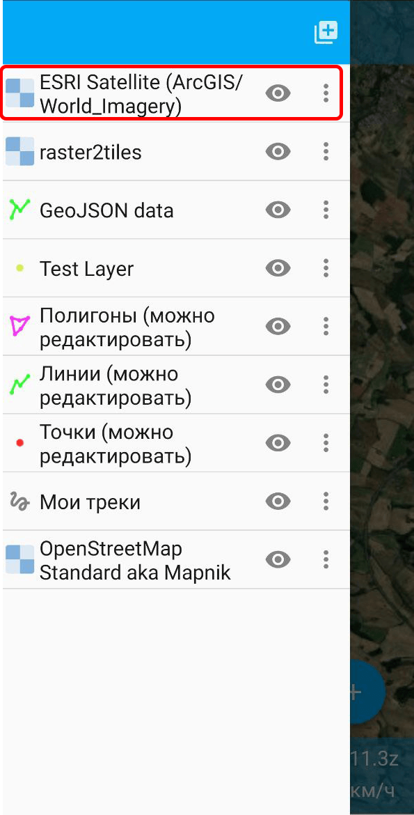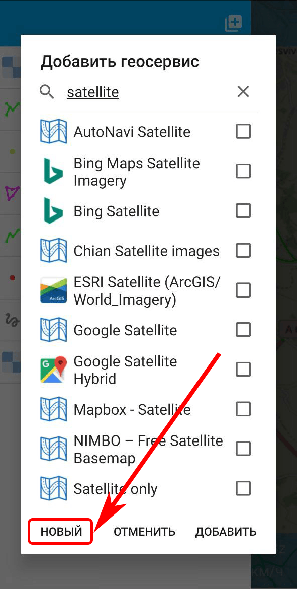 NextGIS Mobile позволяет создавать растровые слои из внешних геосервисов. Это позволяет, например, добавить подложку.