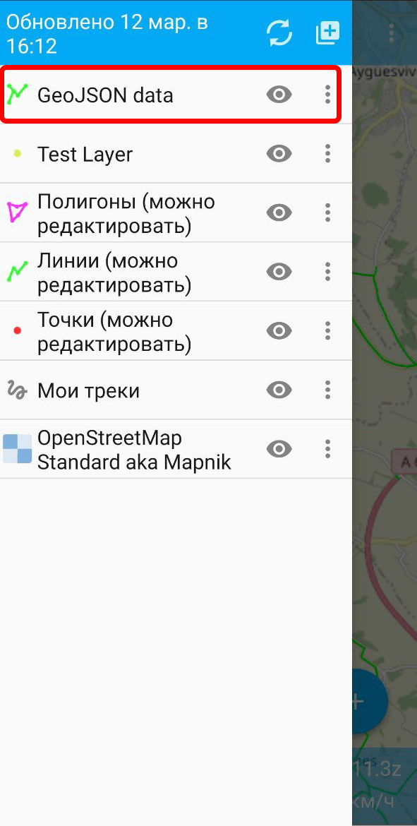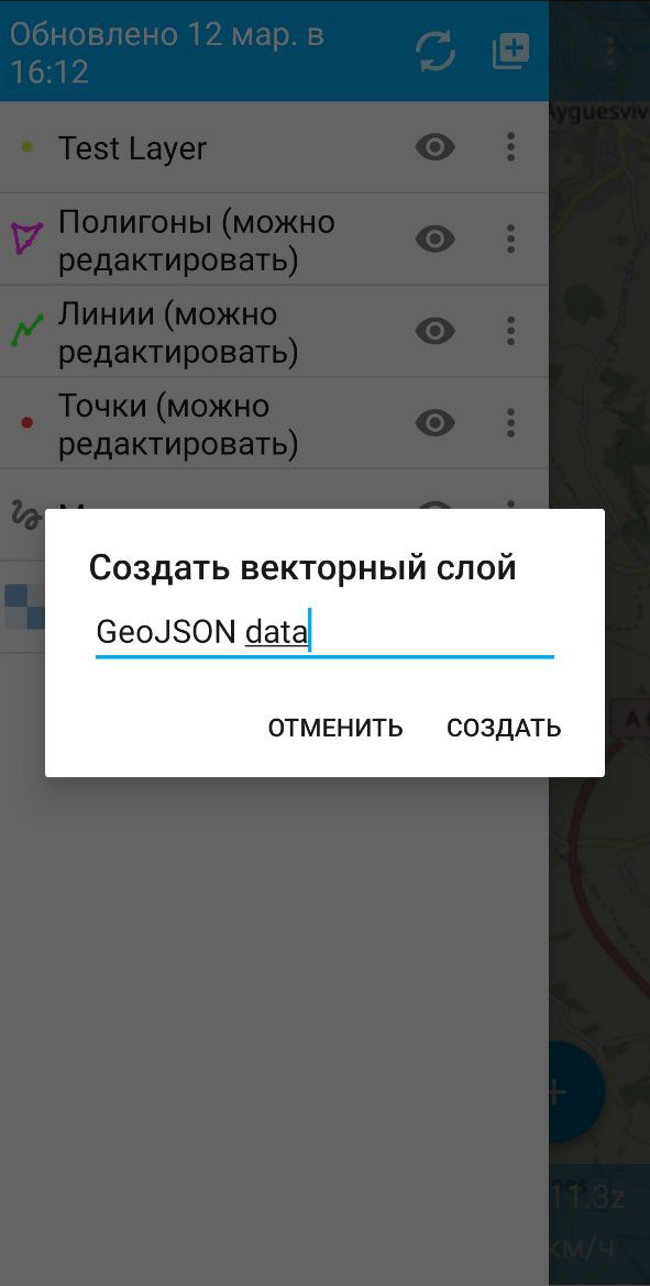 NextGIS Mobile позволяет создать векторный слой путем загрузки существующего файла GeoJSON.
