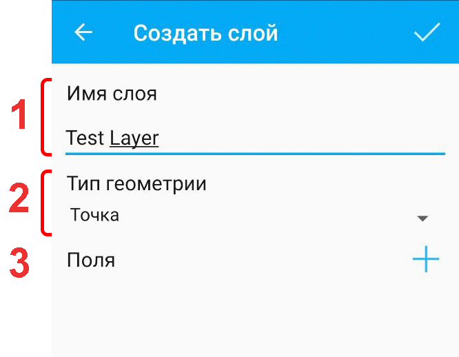 Тип геометрии - выбор геометрии объектов слоя (точка, линия, полигон, мультиточка, мультилиния, мультиполигон).
