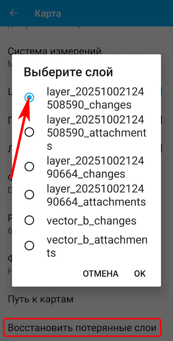 В этом меню показывается название файла слоя. Стандартные слои, создаваемые при установке приложения, имеют следующие названия: