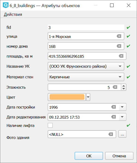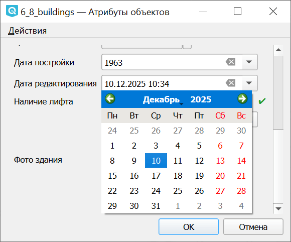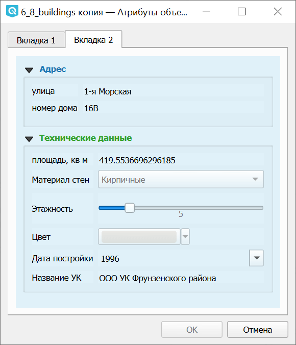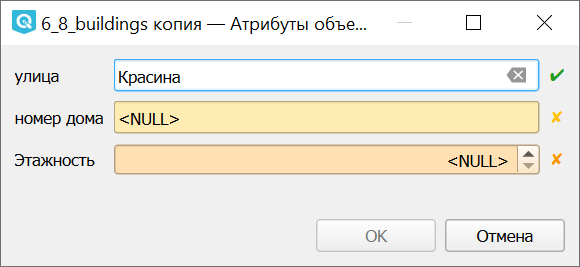 Для удобства оцифровки QGIS позволяет настраивать форму ввода атрибутов.