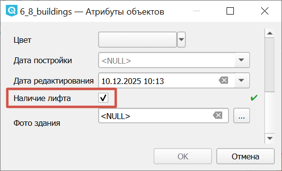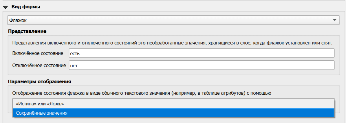 При этом можно выбрать, как отображать значение поле в таблице атрибутов - использовать подставляемые значения или стандартные логические «истина» и «ложь».