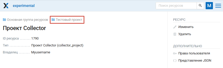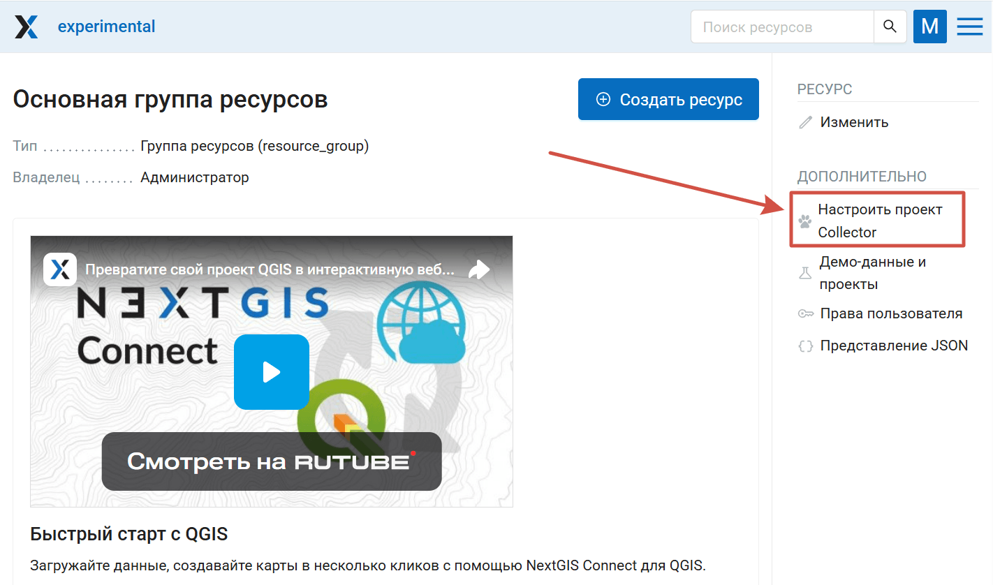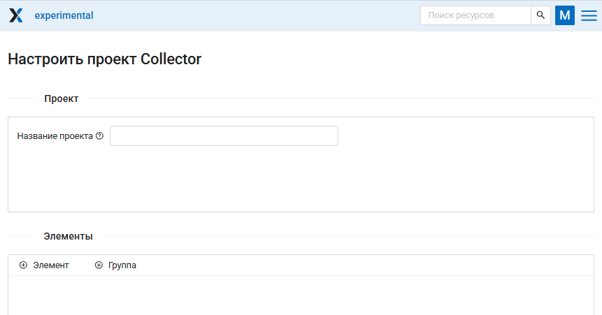 Проект Collector также можно создать через стандартный интерфейс созданя ресурса.