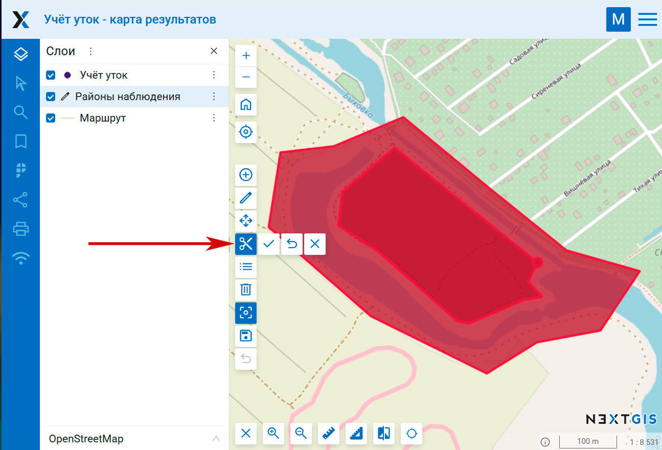 Если нужно создать полигон с отверстием, сначала нарисуйте внешний контур и завершите создание объекта, затем вырежьте отверстие инструментом