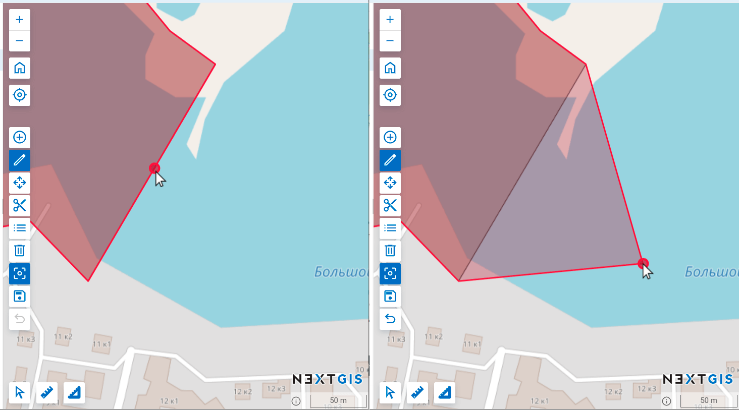 Также вы можете передвигать отдельные узлы линейных и полигональных объектов.
