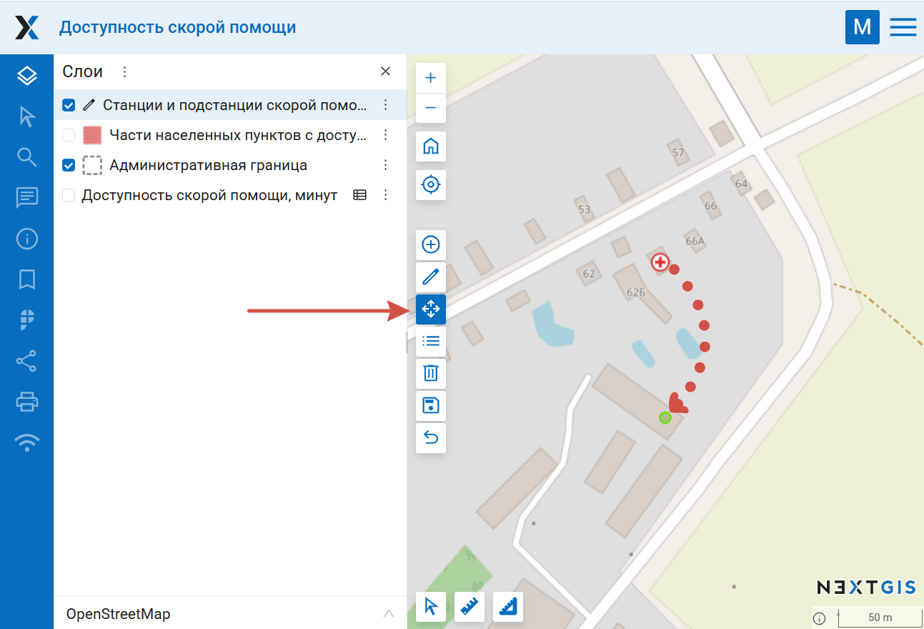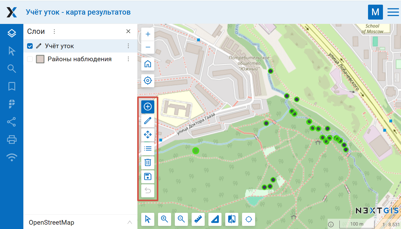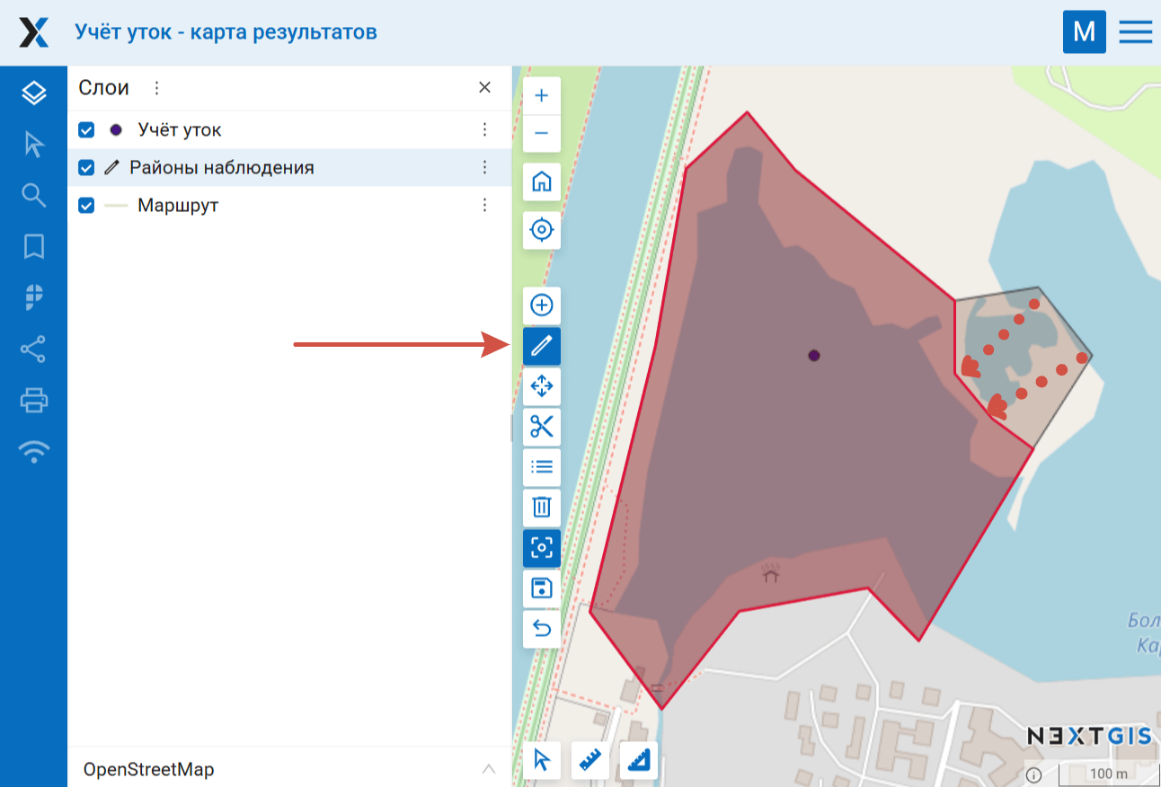 На Веб-карте появится панель инструментов, позволяющая провести редактирование (см. Рис. 7.94.):