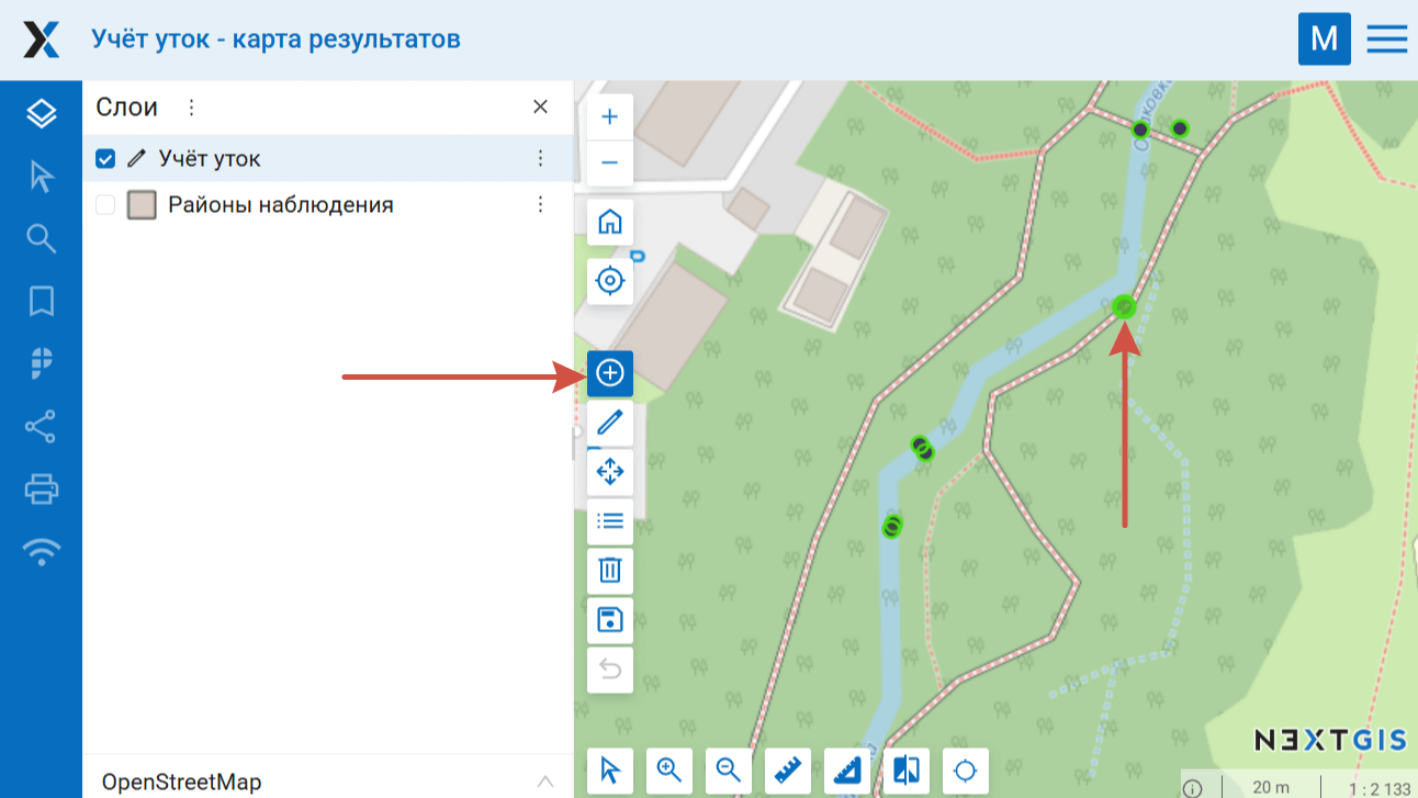 При создании линии необходимо щелчками на карте указать положение ее начала и конца. При создании полигона каждый последующий щелок будет указывать положение очередного его узла, чтобы завершить создание полигона, необходимо щелкнуть по его начальной точке. При создании узлов будет работать прилипание.