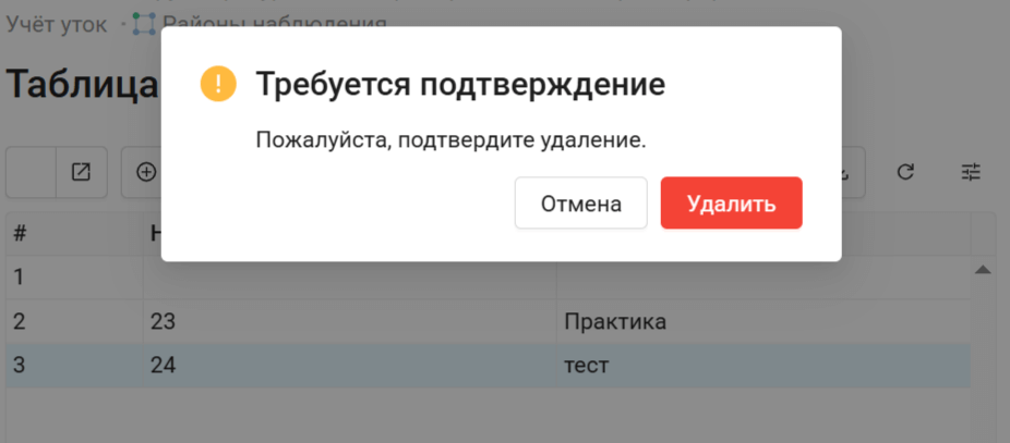Во всплывающем окне подтвердите удаление объекта.