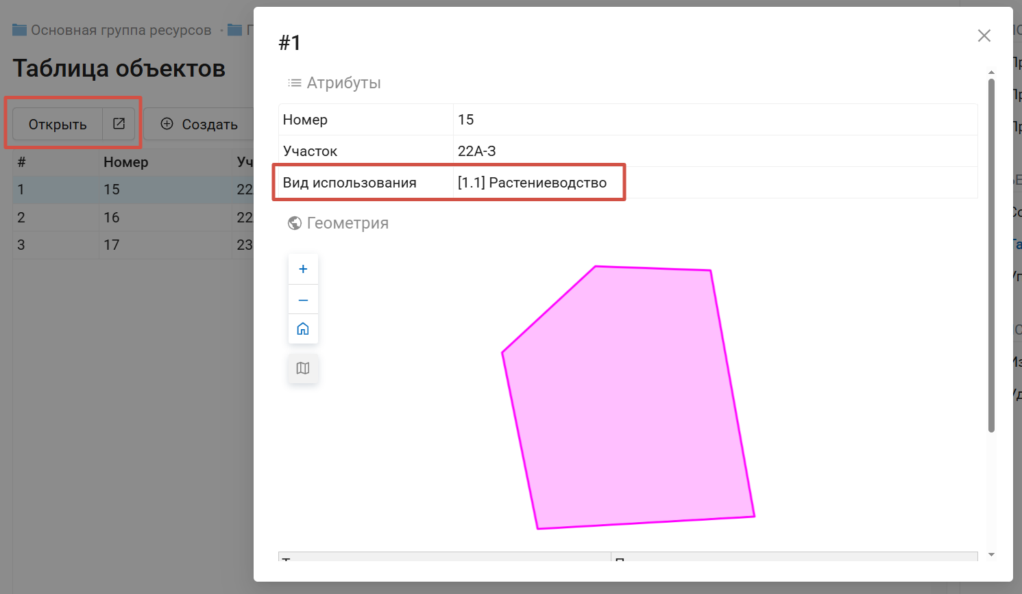 Рис. 7.151. Превью объекта, в поле «Вид использования» показаны и ключ, и значение из справочника¶