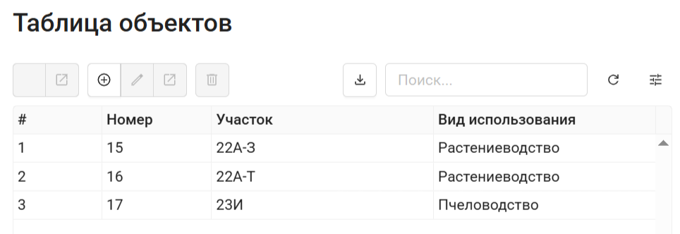 Рис. 7.150. Таблица объектов слоя без справочника: отображается цифровой код¶