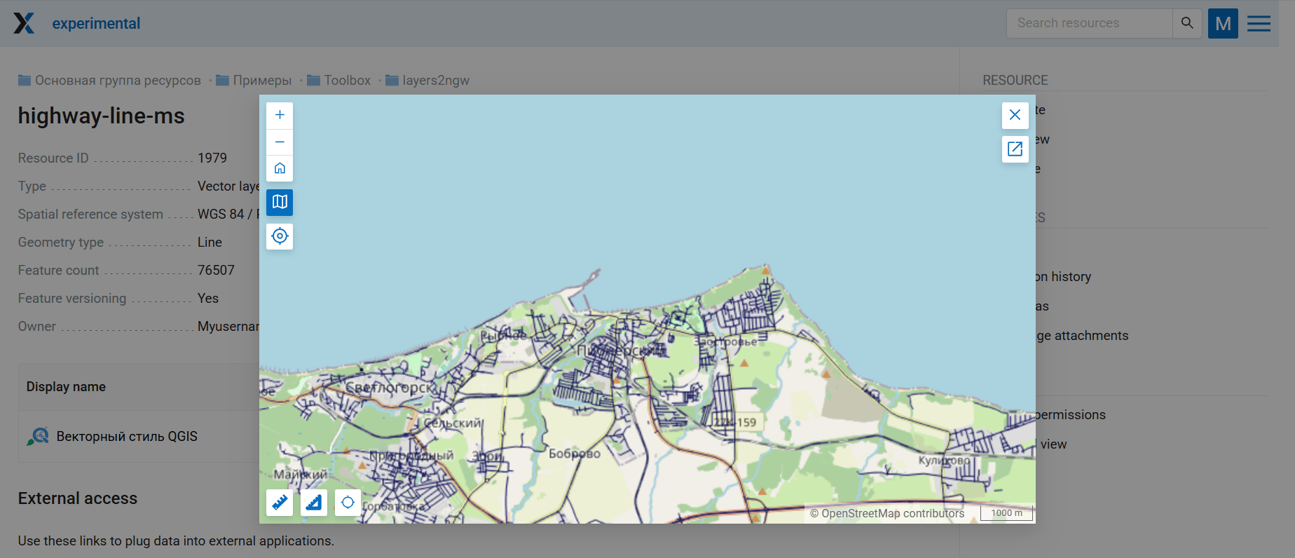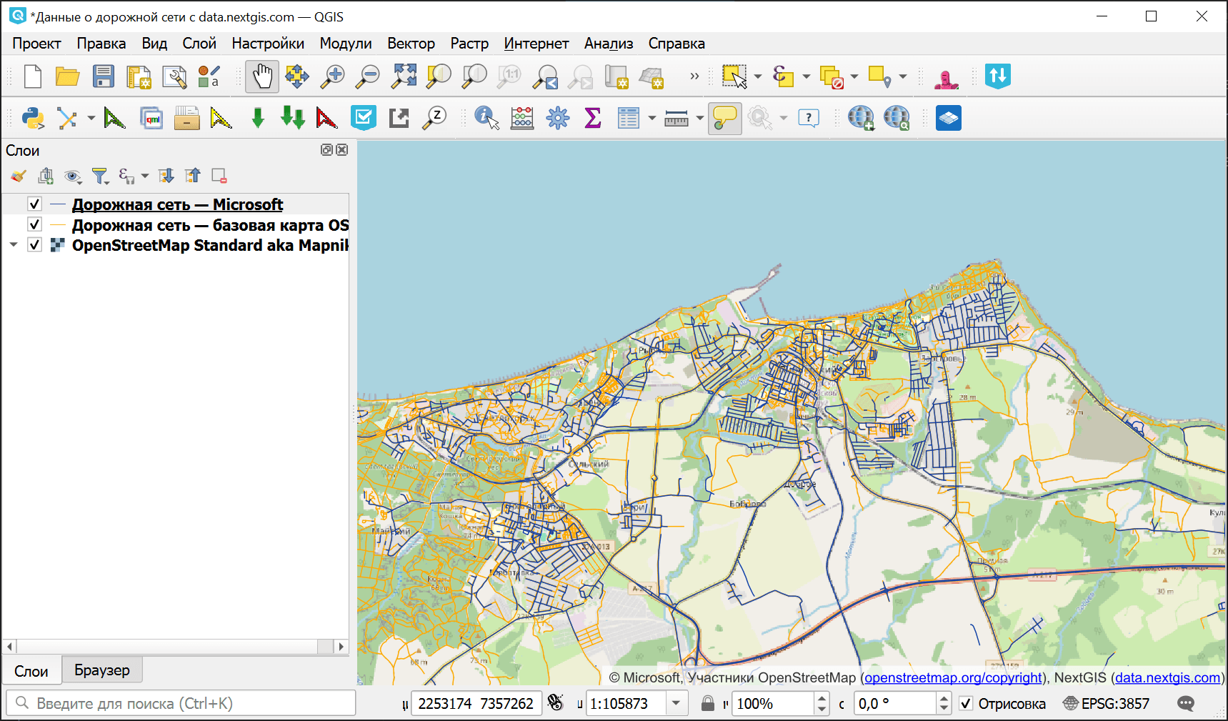 Рис. 3.25. Данные о дорожной сети с NextGIS Data¶