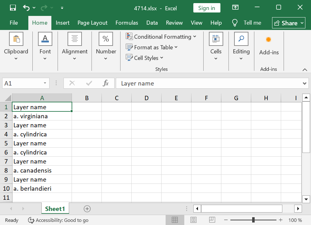таблица в формате XLSX с перечнем пересечённых слоев.